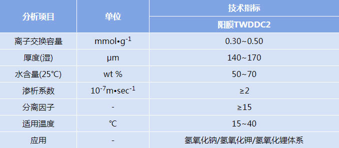 备注:上述数据均为参考值,而非离子膜的性能保证值,表格中的数据可能变更。
